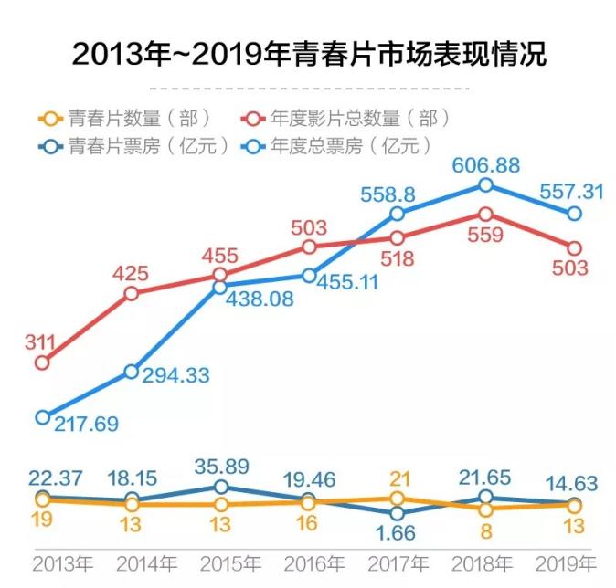 隐患在2016年初现,在2017年集中爆发,当年上映的21部青春片,最终票房仅1.66亿,包括光线在内的一众青春片投资者均马失前蹄,为青春片的市场前景蒙上一层阴霾。