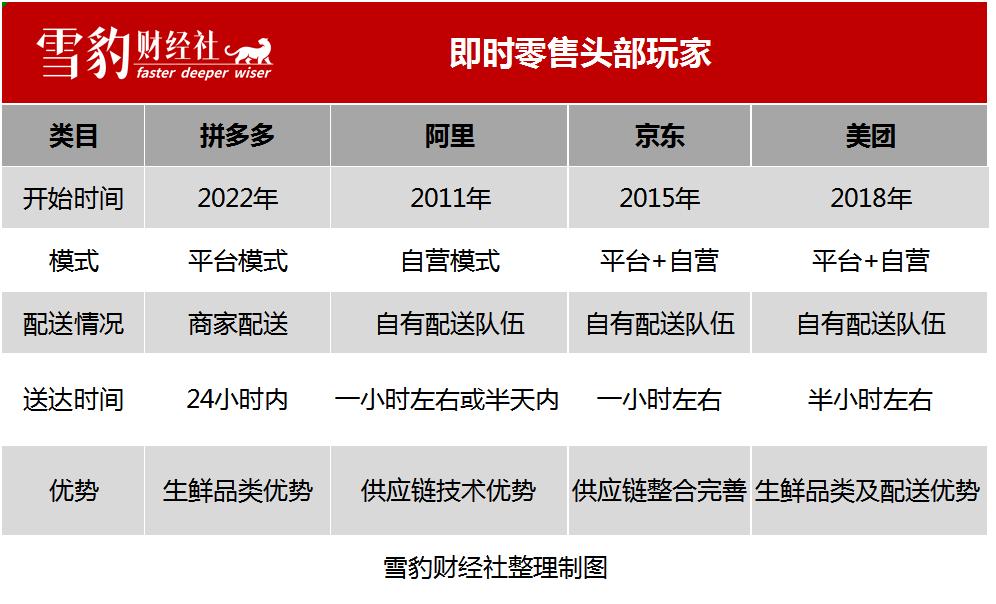 更致命的“慢半拍”在于,拼多多入场“搅局”之际,阿里、京东、美团早已在即时零售行业布局多年。