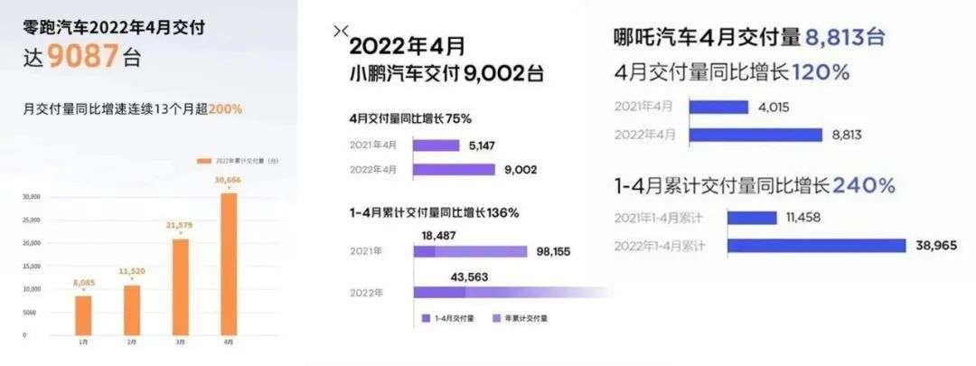 就在刚刚过去的4月份,新能源汽车市场销量“爆冷”,根据各家车企官方数据,此前知名度较低的零跑汽车,零跑以9,087辆交付量夺得销量王冠,小鹏、哪吒分别交付9,002辆和8,813辆位列第二、第三。