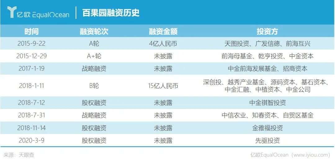 百果园的野心不止于此,2015年起开始引入外部投资。2015年9月,百果园完成4亿元A轮融资,由天图投资领投,广发信德、前海互兴等机构跟投,创下彼时水果零售行业最高融资纪录。2018年,百果园又完成了高达15亿元的B轮融资。