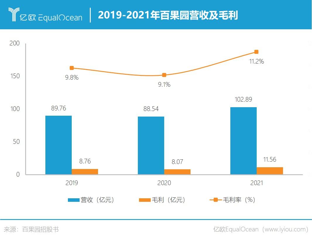 2019-2021年,百果园的毛利分别为8.76亿元、8.07亿元与11.56亿元,毛利率分别为9.8%、9.1%及11.2%。同期,净利润分别为2.49亿元、0.49亿元与2.35亿元,净利润率分别为2.8%、0.5%及2.2%。