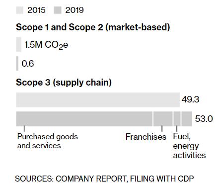 在影响力报告中,特斯拉引用了彭博社一篇报告的观点,讲述了MSCI的ESG评级方法为何不合理。以麦当劳为例,2019年麦当劳相比2015年二氧化碳排放量提高了7%,但因其在办公室和餐厅的环保措施,MSCI提高了麦当劳的评级,而并未考虑到其在供应链中增加的排放量远高于省下的排放量。