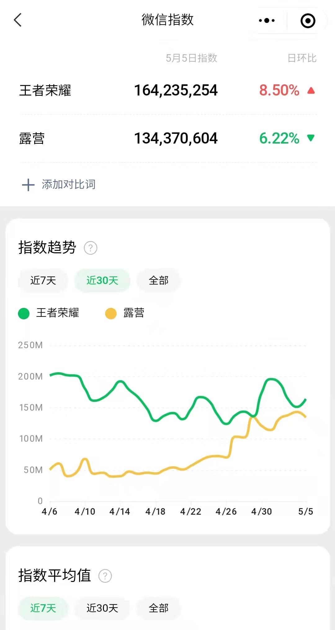 五一假期里,关键词“露营”在微信指数的热度急升,甚至一度趋近于爆款游戏“王者荣耀”。