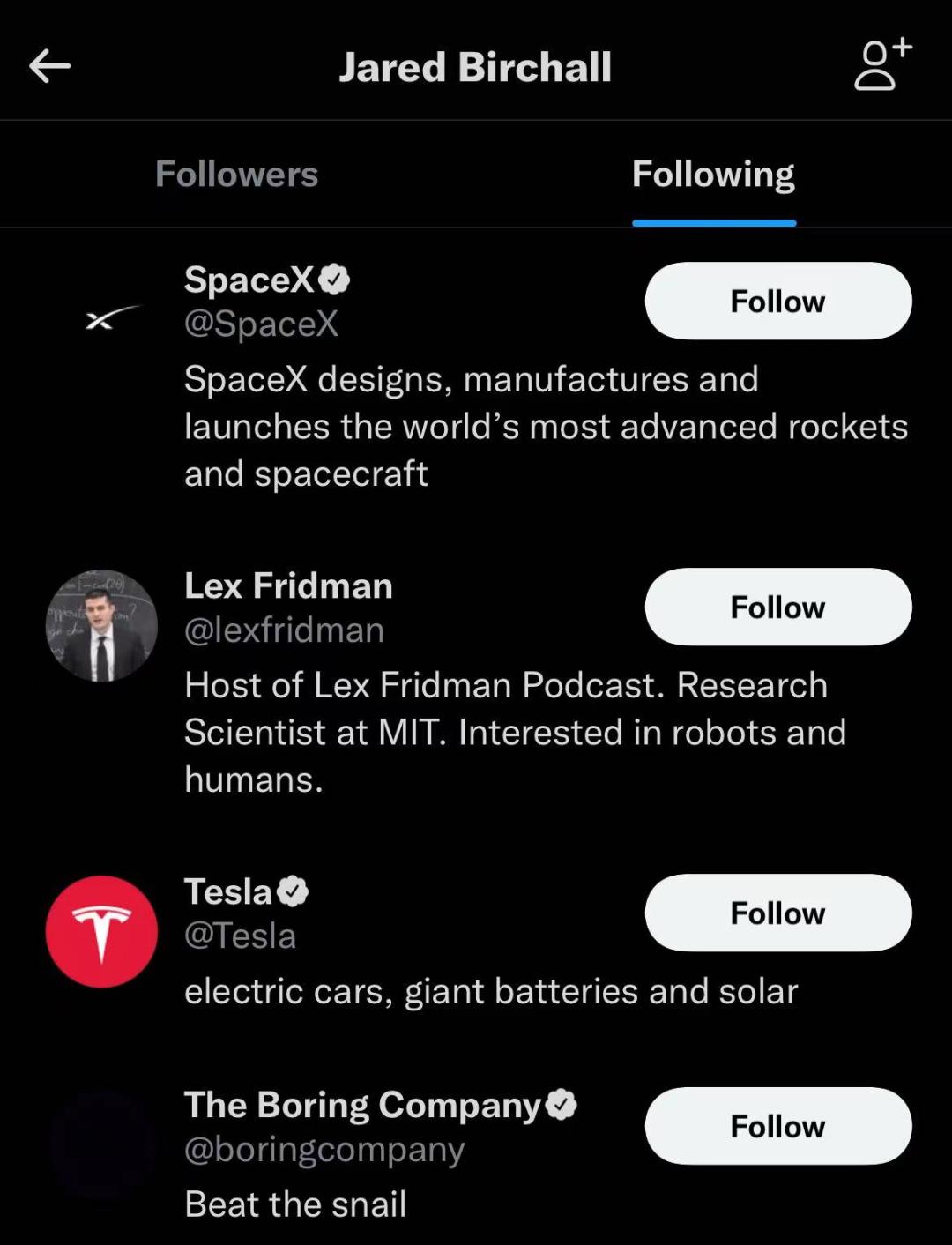 和马斯克的高调张扬不同,没有太多人知道伯查尔,他的推特上从未发过任何内容,只关注了老板马斯克和SpaceX在内的几家公司,前同学和前同事们只听过这个人的名字。