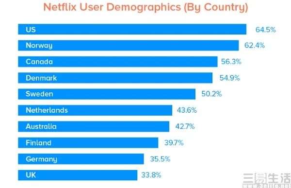 更进一步来说,国内的付费会员模式还远未成熟。以“爱优腾”为例,其中2021年腾讯视频的付费会员数为1.24亿、爱奇艺付费会员数在去年第四季度下降至9700万。而Netflix在美国市场的渗透率已经达到64.5%,即便是渗透率较低的英国市场也达到了近33.8%。