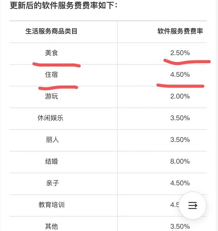 其中,住宿软件服务费率上调至4.5%,美食、游玩和休闲娱乐分别上调至2.5%、2.0%和3.5%。而《政策》内指出,2022年6月1日之前,用户支付的订单,软件服务费率仍按0.6%执行。