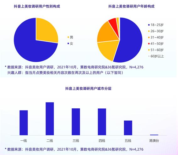 根据《白皮书》数据,美妆品牌的兴趣人群中,女性、18-23岁年轻人及二三四线城市群体占大多数。