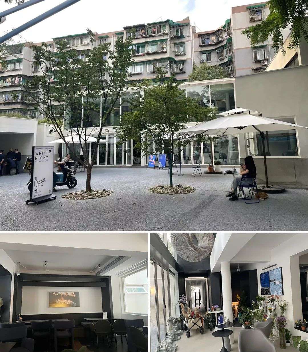 白夜外观上是一个单体的两层白色建筑,内部装修则为灰白色,门口的墙面极具艺术感,吸引不少网红前来打卡。也是一个不错的拍照地,充满艺术感的设计吸引了不少网红前来打卡。