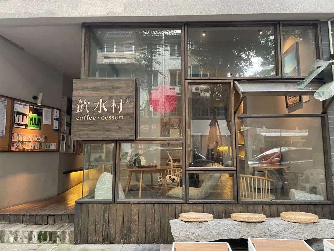 饮水村则引用了日式枯山水元素,禅意十足,这样的装修风格使得它区别于周围的店铺……