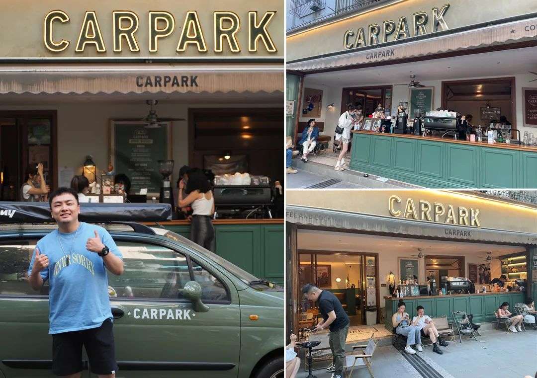 Carpark则是以墨绿色风格位置,门店整体为美式复古风格,并且将点单和咖啡制作地都放在了门口。在店门口的街道上,一辆墨绿色的汽车位于正门外,也成为人的打卡点。
