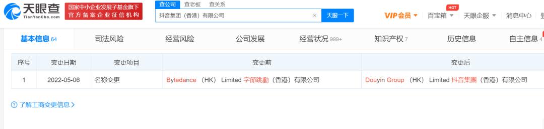 与此同时,据天眼查显示,字节跳动旗下多个公司也同时更名为“抖音”。字节跳动有限公司更名为抖音有限公司。据国家企业信用信息公示系统显示,北京字节跳动科技有限公司也更名为北京抖音信息服务有限公司。