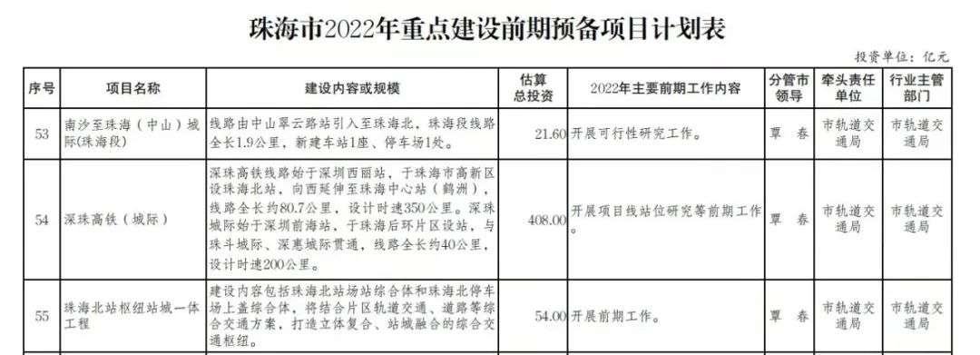 昨天(4月221日),珠海发改委发布了最新的《珠海市2022年重点建设项目计划》