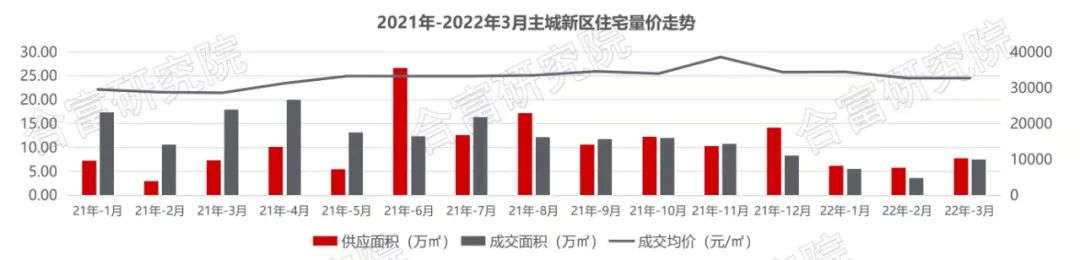 主城新区3月的成交面积达到7.45万㎡,环比上涨109%。