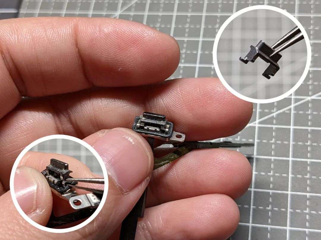 这些弹片和金属钩的尺寸非常小,你甚至有可能连它们沾到了手上都不会留意到,同时第三方的后壳和散装贩卖的按键之间有时候会出现比较明显的公差,多准备一些固定件可以最大程度避免按键装不上的窘况。