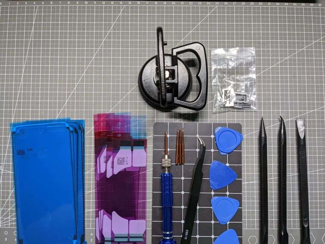 以这台 iPhone 8 为例,买好了心仪的后壳总成仅仅是给它换衣服的第一步,在真正坐下来拆解之前你还需要准备这些工具: