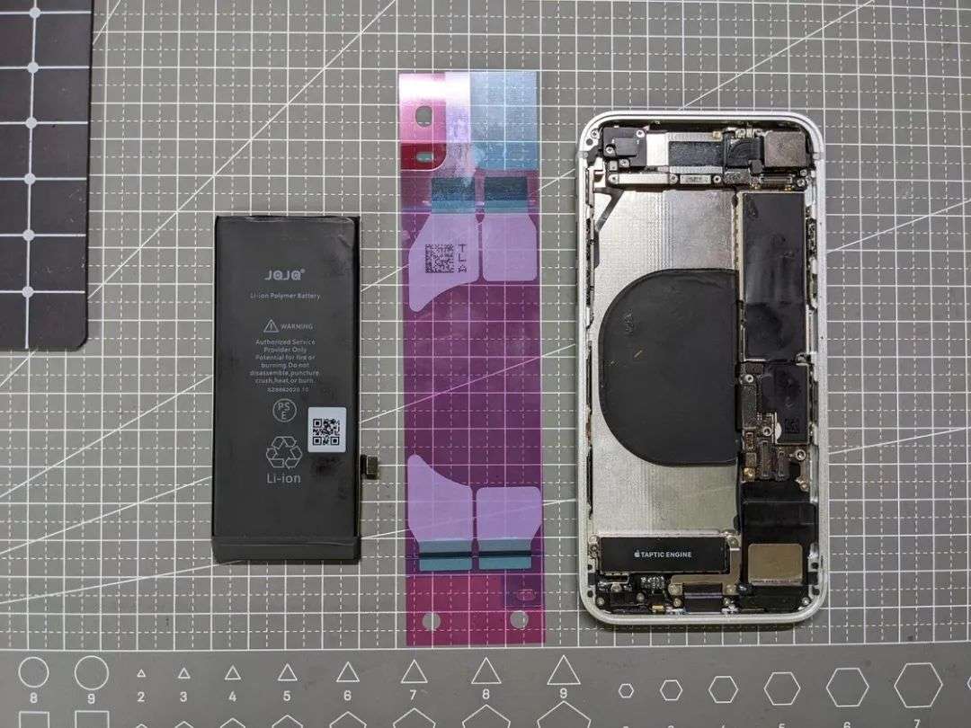 新的电池易拉胶 :用来固定电池——不推荐使用普通的双面胶或者液体胶水,因为可能会导致后续换电池的时候撕坏电池起火,另外也尽量购买专门给 iPhone 8 使用的、切割出无线充电线圈位置的易拉胶,否则同样容易扯坏无线充电线圈。