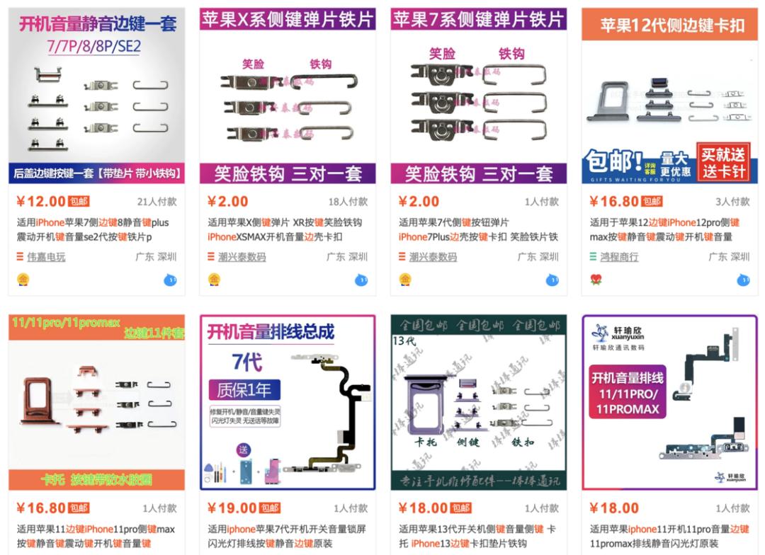 淘宝搜索「iPhone 边键」的结果