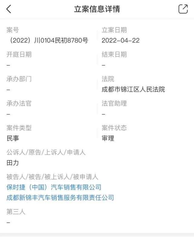 车主起诉保时捷相关案件信息 图源/受访者供图
