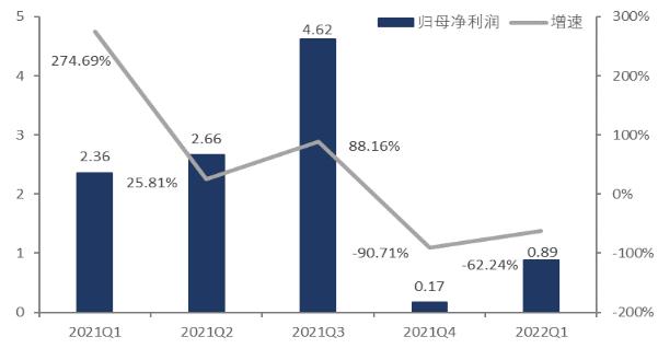 绝味食品2021Q1-2022Q1单季归母净利润情况 数据来源:wind,36氪整理