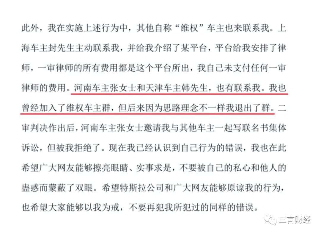 陈某的道歉信末尾,还提到河南车主张女士和天津车主韩先生曾联系自己,并且自己也曾加入了维权车主群,但后来因思路理念不一样退出了群。二审判决作出后,张女士曾邀请他一起写联名书集体诉讼,但被其拒绝。