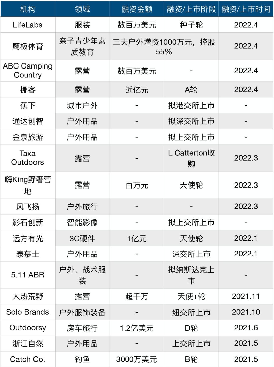 近一年户外融资/上市情况