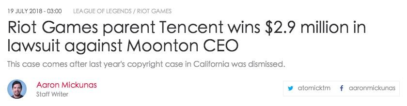 另一方面,拳头的母公司成功要求沐瞳科技CEO徐振华赔偿290万美元。