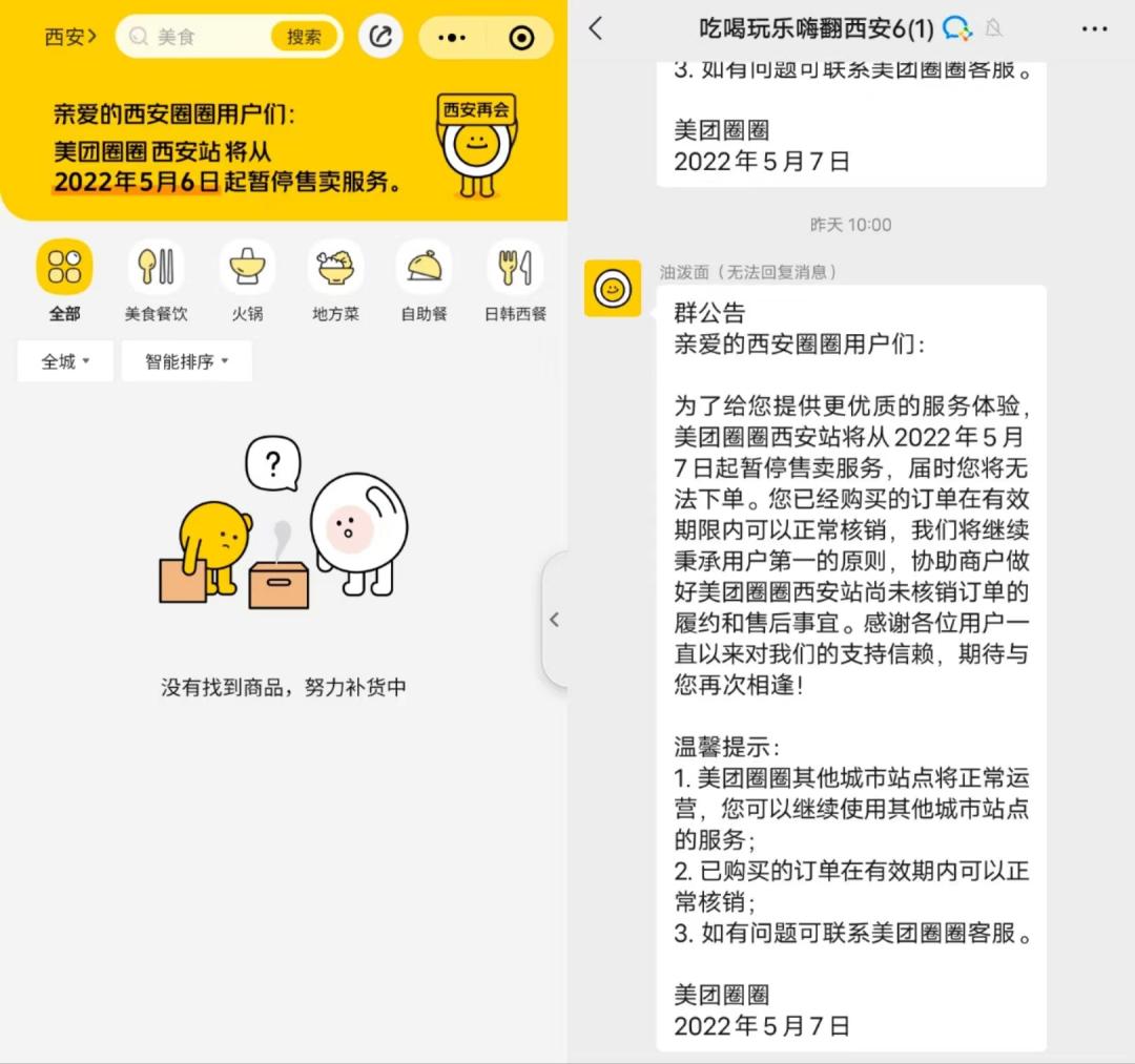 《新言财经》独家获悉,作为美团圈圈首开之城的西安站,已从5月6日起暂停售卖服务。