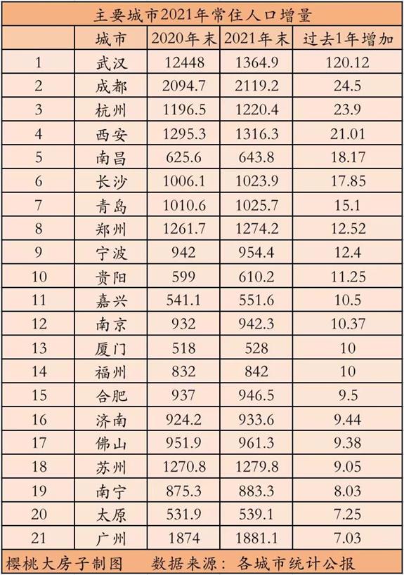 请注意,表中的数据是“常住人口增量”而非“户籍人口增量”,是指实打实留在这个城市工作生活的人。