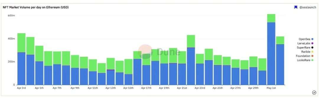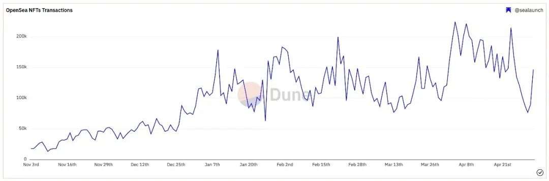 他指出,Dune Analytics更准确的链上数据显示,自1月份的新年高点以来,NFT交易几乎没有下降,远非Non Fungible声称的巨大降幅。
