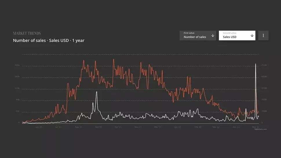 数据网站Non Fungible最近一份报告称,自2021年9月达到约225,000的峰值以来,NFT的日销量已降至19,000——降幅达92%。