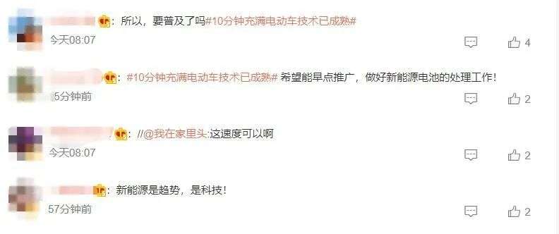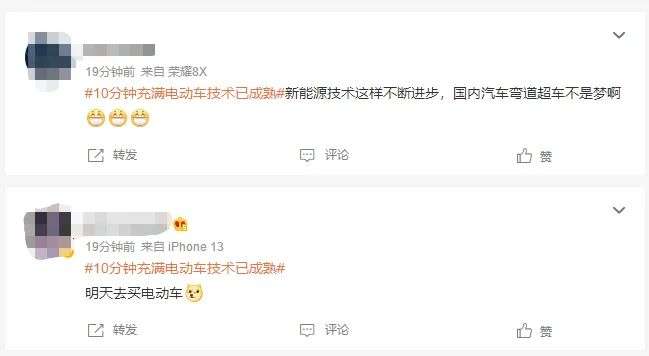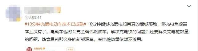 对于即将到来的快充技术,不少网友充满期待,纷纷留言表示:“明天就去买电动车。”
