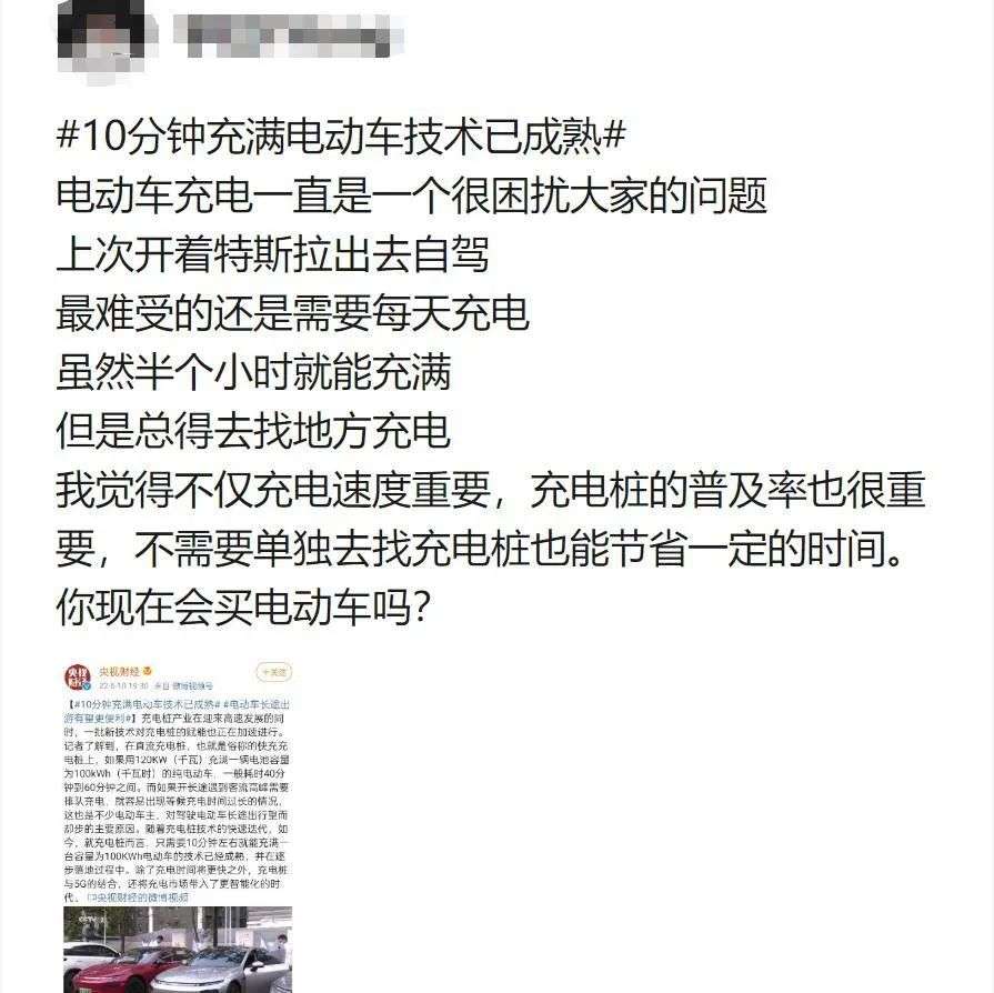 你的续航焦虑有救了?10分钟充满电动车技术已成熟,网友:找不着充电桩也白搭