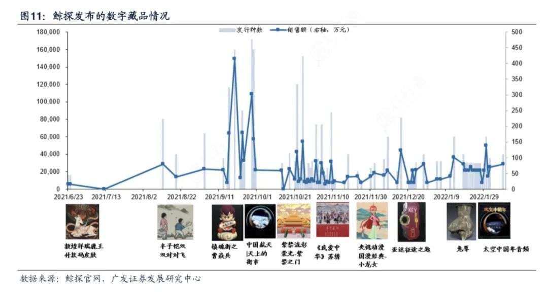 即便如此,这两个平台依然获得了很高的关注度,在鲸探发布的多款数字藏品中,有多款藏品的销售额超过百万元。