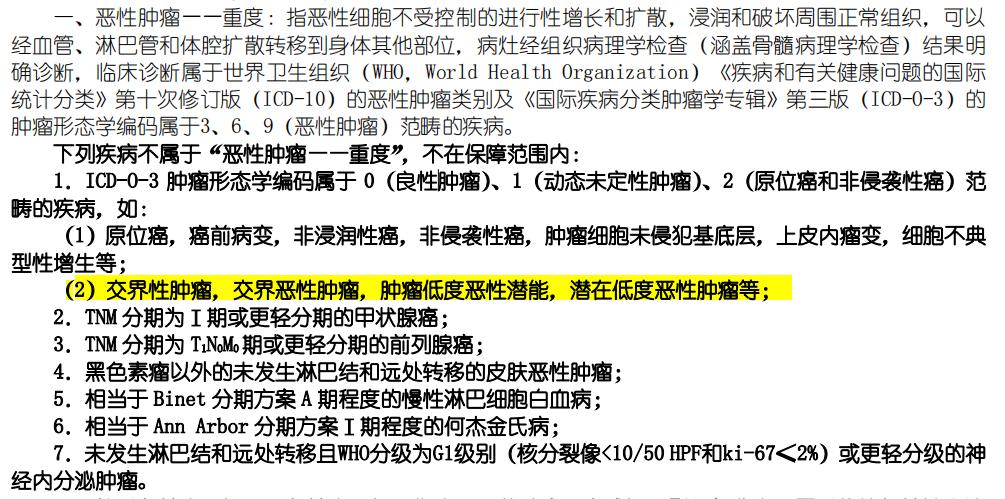那么交界性肿瘤是否属于 “恶性肿瘤—重度” 呢?