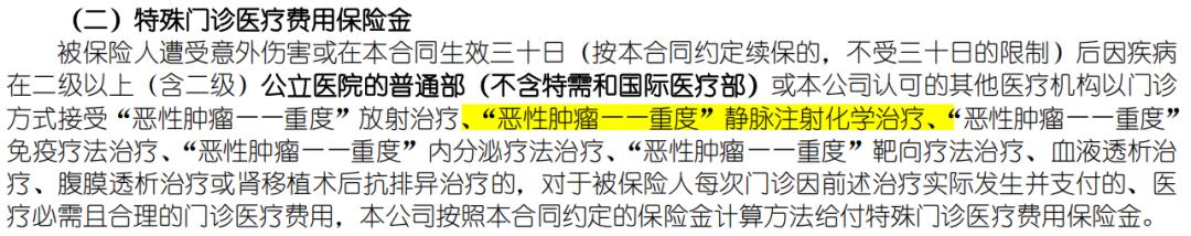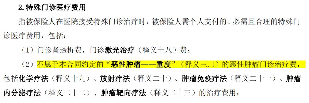 我们先来看下这位朋友买的百万医疗险的《特殊门诊医疗费用保障责任》条款,答案就藏在条款里: