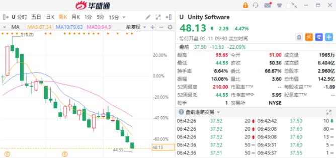 今日(5月11日)截至发稿,Unity盘前大跌27%,预示着市场对其未来极其不看好。