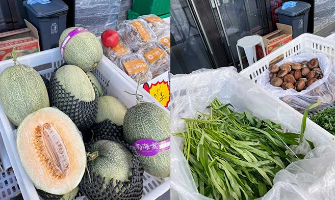 除了蔬菜之外,各种水果也被海底捞摆了出来,橘子、西瓜、菠萝、哈密瓜,以及其他各种水果,统统摆在街边,等待人们购买。