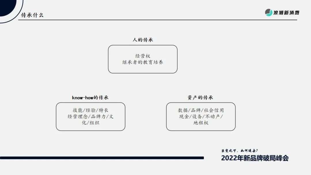 第三就是传承力,很多新消费企业可能还没遇到这个问题,但如果去看上一代创业者,其实很多都开始面临这个问题了。