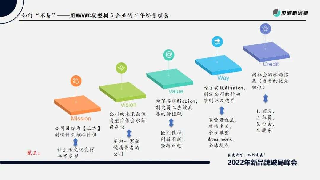 下面是一个MVVWC模型,大家可以按照这种方式去设计自己公司的百年经营理念。