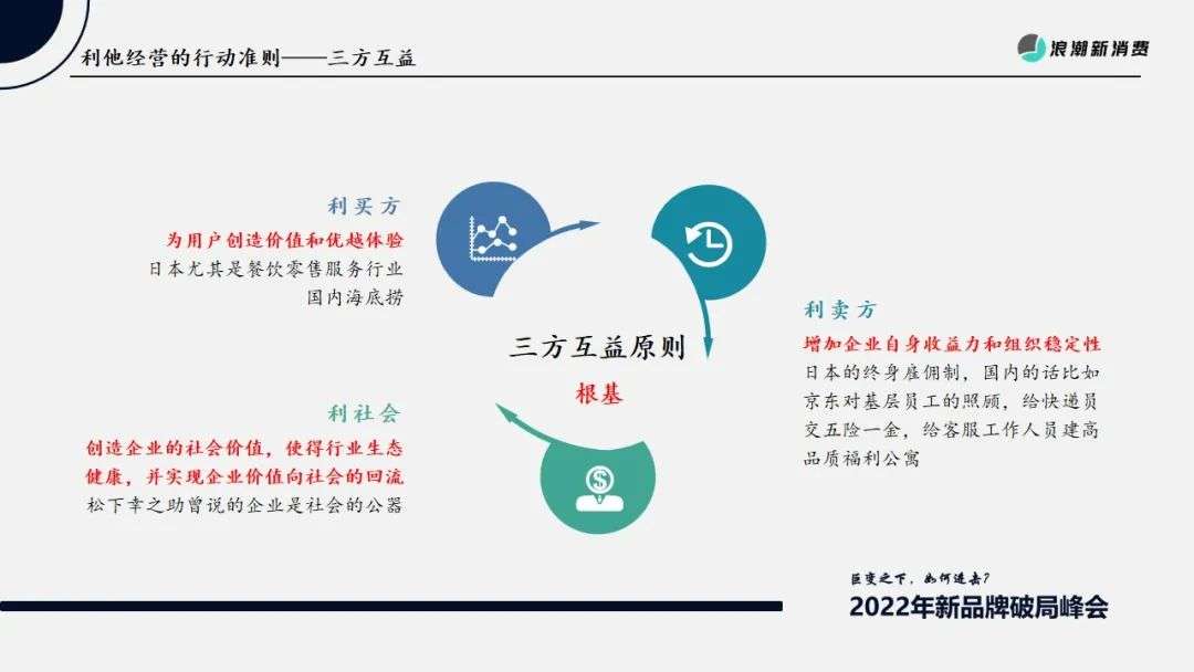 日本有一家百年企业叫伊藤忠,伊藤忠在2020年的时候把整个集团的经营理念改成了以利他经营为基础的三方互益。