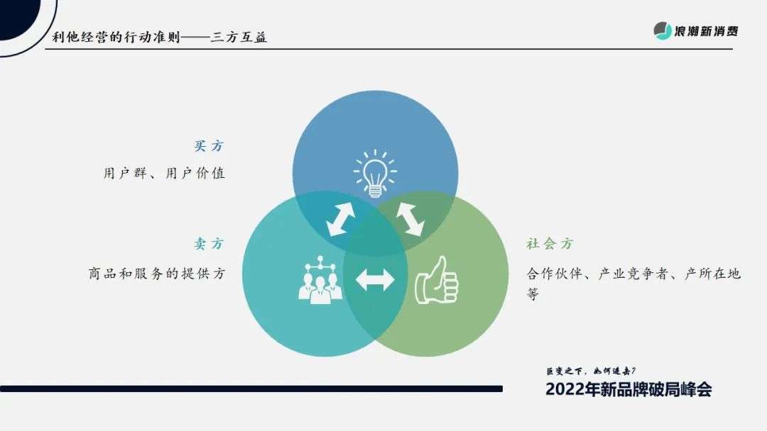 如果从这个角度去思考问题,那你应该怎么去做,可能就会有很清晰的认知。首先这不影响你盈利,其次因为你有了利他思想,所以你的战略定义就会更强。