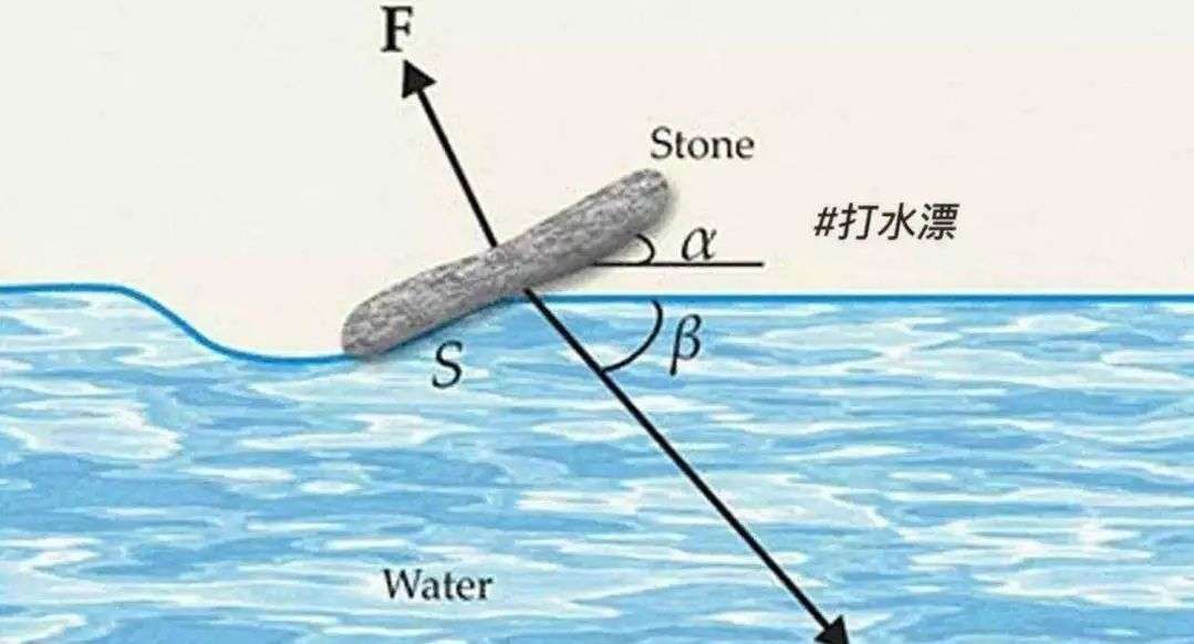 而小于20°的话,石块就会在穿越水的过程中快速消耗掉动能;而大于20°,尤其大于45°时,石块就会直接掉进水里,无法再浪。