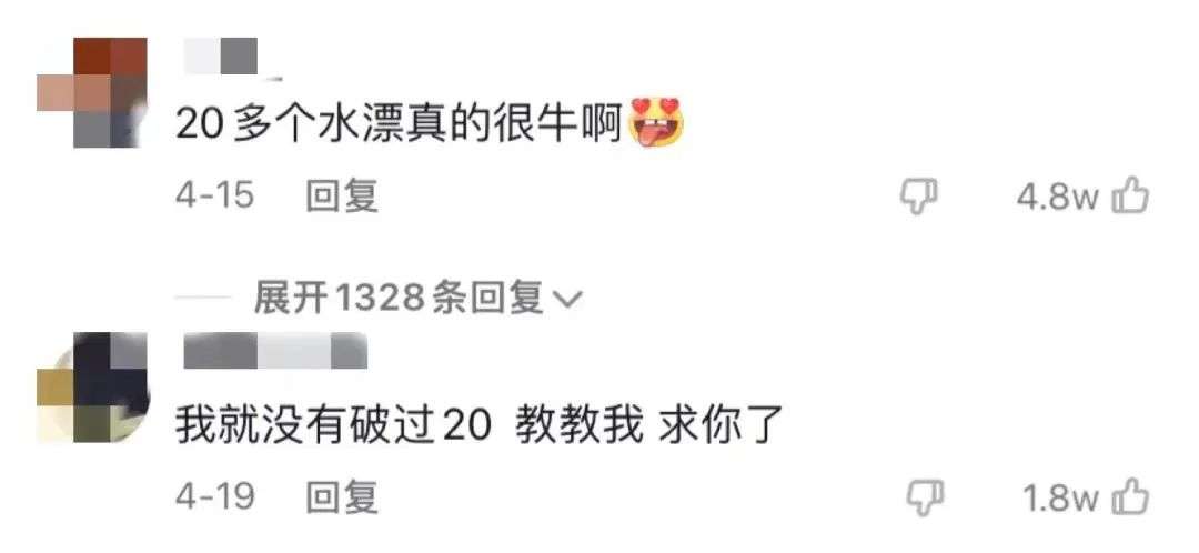 在这条视频下,有个网友留言说自己有一次砸了20多个水漂,拿了3.8万多的点赞两千多条评论。