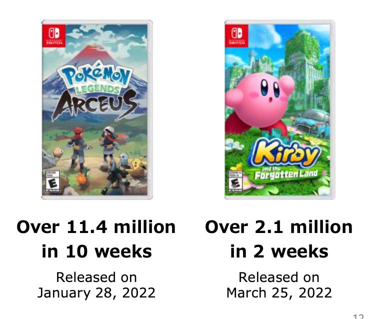 当中包括《集合啦动物森友会》、《健身环大冒险》等已经畅销了好几年的常青树作品,也有像《宝可梦传说:阿尔宙斯》这样仅仅开卖了几个月的最新爆款。