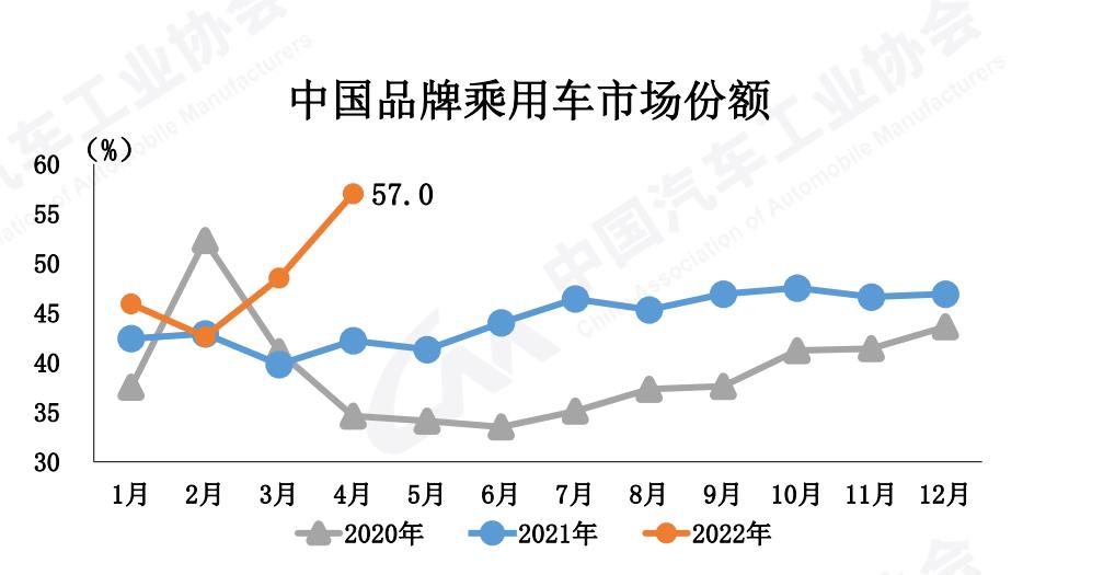 第一个是中国品牌的市场占有率4月份达到了57%,上升了14.9%,1-4月也提升了6%。