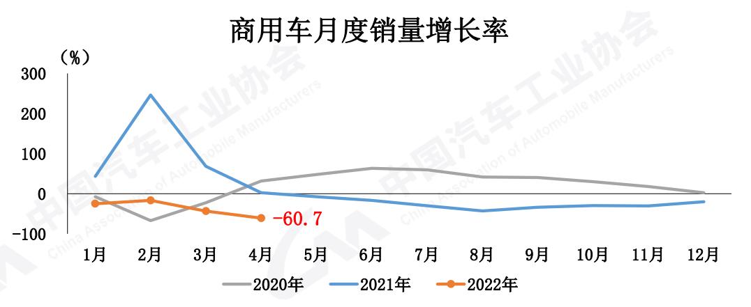 而疫情也对物流产生了更大的影响,商用车的表现更差一些,4月,商用车产销21万辆和21.6万辆,环比下降41.8%和41.6%,同比下降59.8%和60.7%。在商用车主要品种中,货车和客车产销环比和同比均呈较快下降,货车降幅更为显著。