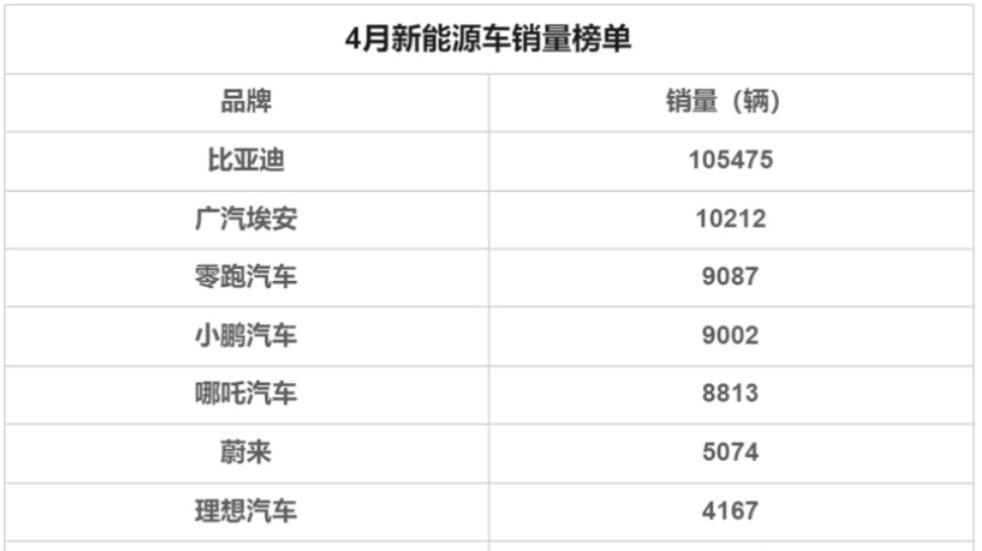 同时,在新能源榜单方面,比亚迪4月单月的销量为10.5万台,拿下了4月厂商销量榜的冠军;同时,比亚迪1~4月的累计销量也达到了38.7万台,也拿下了1~4月新能源厂商销量的冠军。