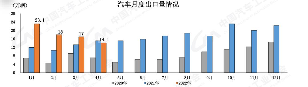 没有产量也导致出口的萎靡,人民币的大幅贬值本来是利好出口的,但因为没有产量,人民币的利好并没有兑现,从出口数量来说,4月汽车企业出口14.1万辆,环比下降17.2%,同比下降6.6%。