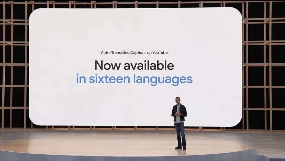 值得一提的是,在发布会结尾,谷歌CEO桑德尔·皮猜(Sundar Pichai)还带来了“One More Thing”,展示了一款 AR眼镜概念机 ,该AR眼镜可以进行 实时翻译 ,并将翻译文字直接呈现在用户眼前。