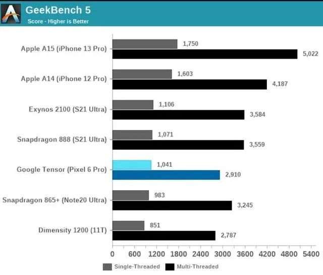 在性能方面,根据GeekBench数据,谷歌初代Tensor芯片的CPU性能大致相当于高通上代旗舰SoC骁龙888的水平。